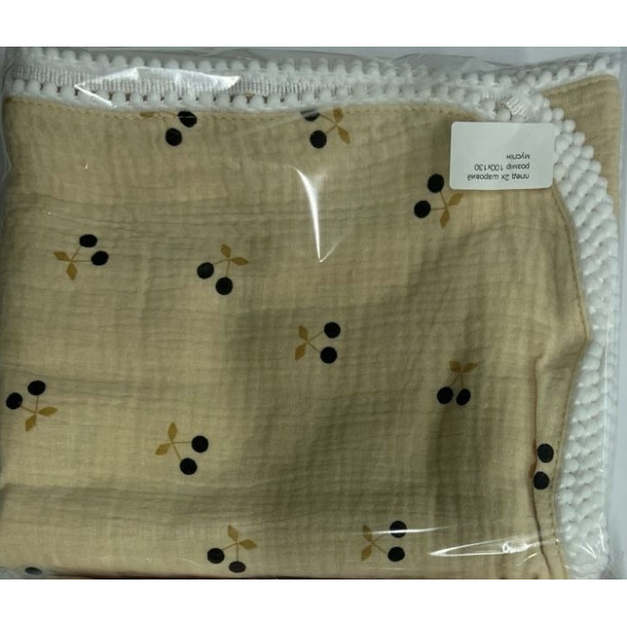 Мусліновий плед жатка 2 шари Вишні на Бежевому 130/100