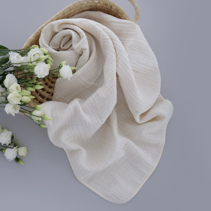 Мусліновий плед жатка Бежевий 4 шари 90/80