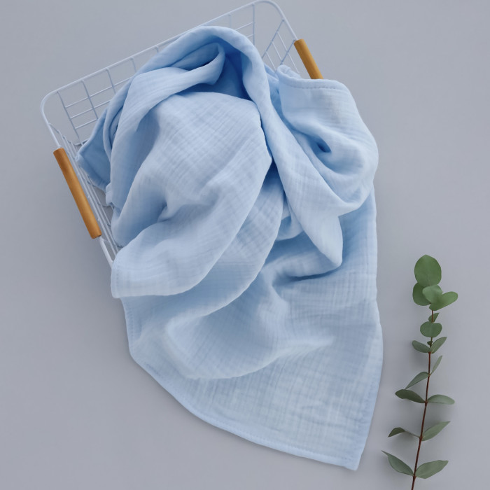 Мусліновий плед жатка Блакитний 4 шари 120/90