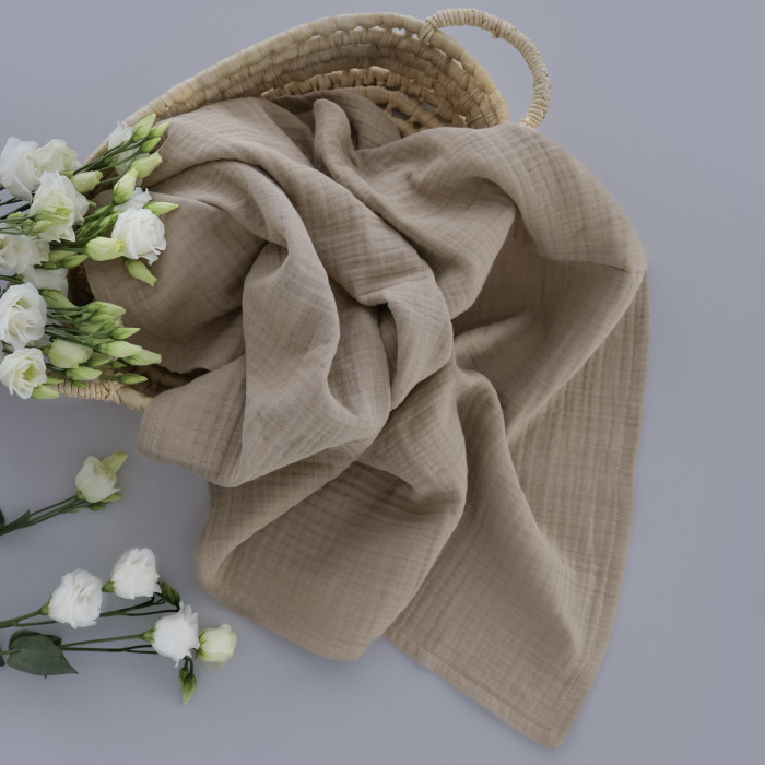 Мусліновий плед жатка темно Бежевий 4 шари 120/90