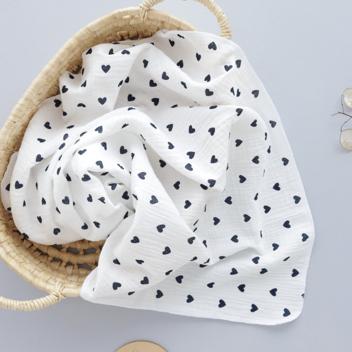 Муслінова пелюшка жатка 2 шари Сердечка чорні дрібні 90/65