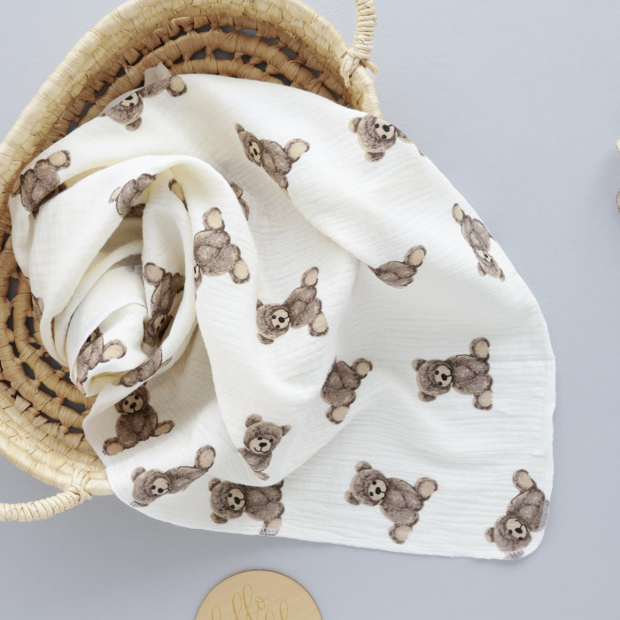 Муслінова пелюшка жатка 2 шари Ведмедики на Кремовому 90/65