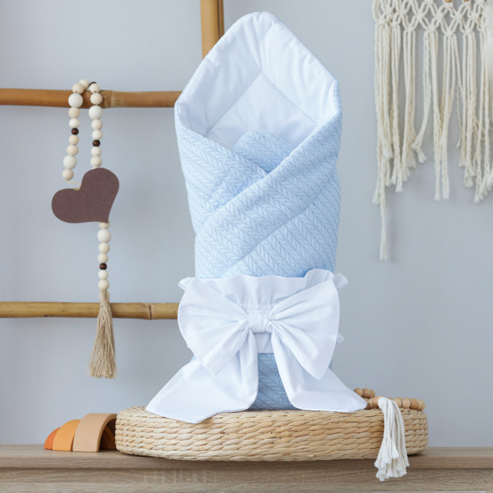 Плед-конверт 80/80 з бантом резинкою Блакитний- Білий /Весна (Синтепон 150)