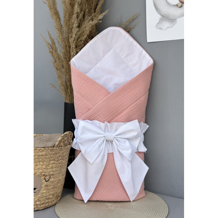 Плед- конверт мусліновий 80/80 з бантом-гумкою Помаранчевий/ Білий / Літо