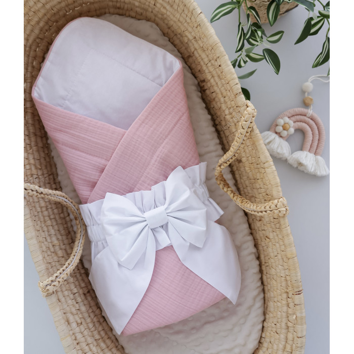 Плед- конверт мусліновий 80/80 з бантом-гумкою Рожевий - Білий /Літо
