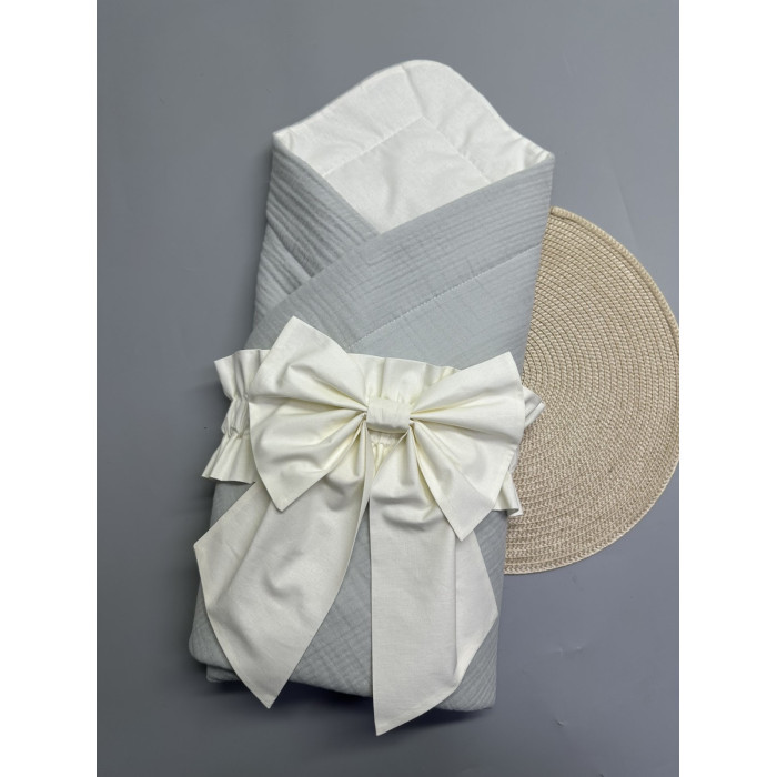 Плед- конверт мусліновий 80/80 з бантом-гумкою Сірий -Молочний /Літо