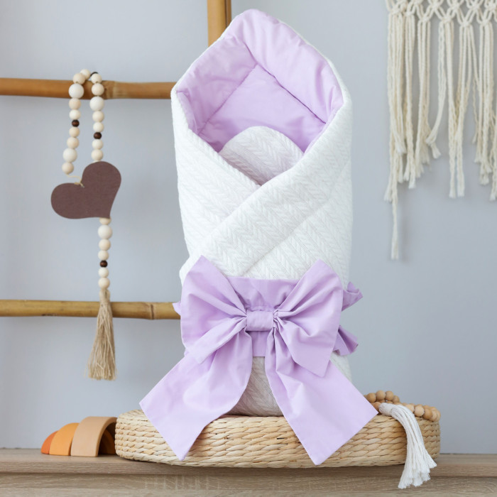 Плед-конверт з бантом резинкою Молочний/ Фіолетовий 80/80 /Весна