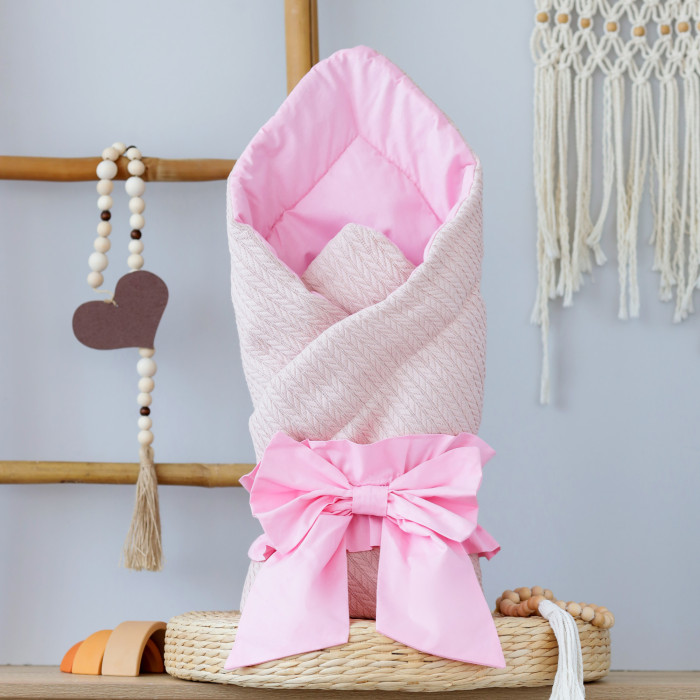 Плед-конверт з бантом резинкою Пудровий -Яскраво Рожевий 80/80 / Весна (Синтепон 150)