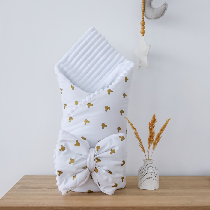 Плед зі зʼємним утепленням та бантом-резинкою Міккі Золото (гліттер) / Білий плюш 90/80