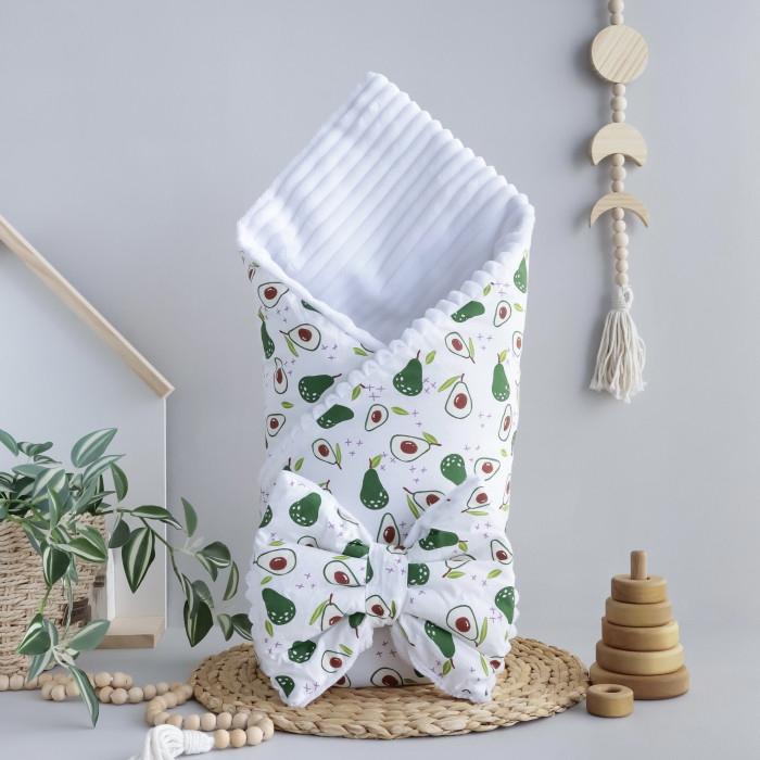 Плед зі з‘ємним утеплювачем та бантом-резинкою Авокадо /Білий плюш 90/80
