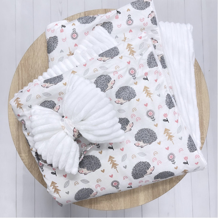 Плед зі з‘ємним утеплювачем та бантом-резинкою Їжачки Сірий / Білий плюш 90/80