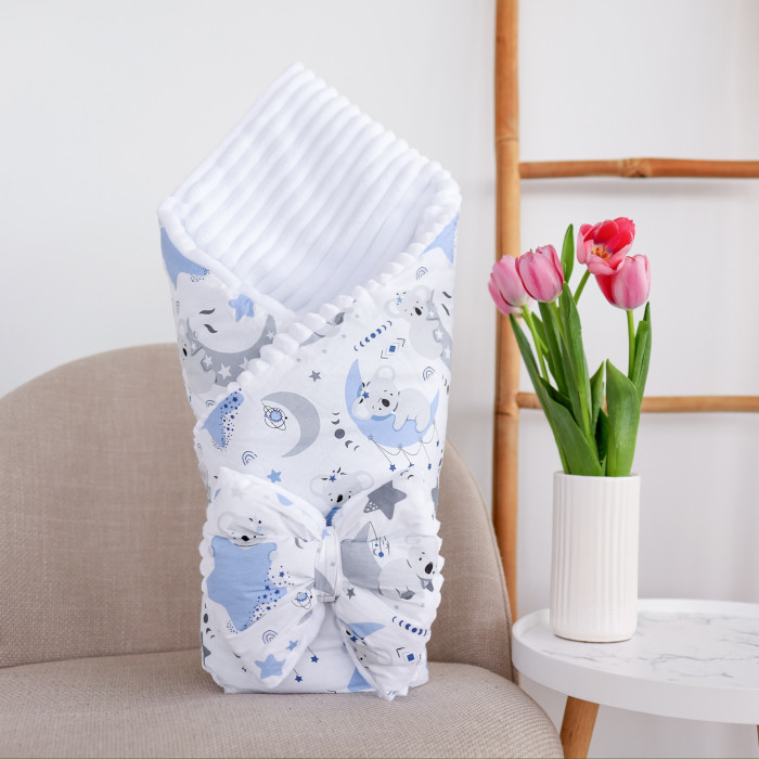 Плед зі з‘ємним утеплювачем та бантом-резинкою Коала Блакитний /Білий плюш 90/80