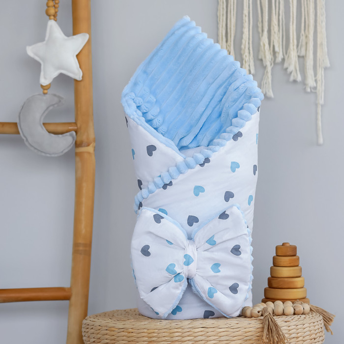 Плед зі з‘ємним утеплювачем та бантом-резинкою Сердечка Блакитний / Блакитний плюш 90/80