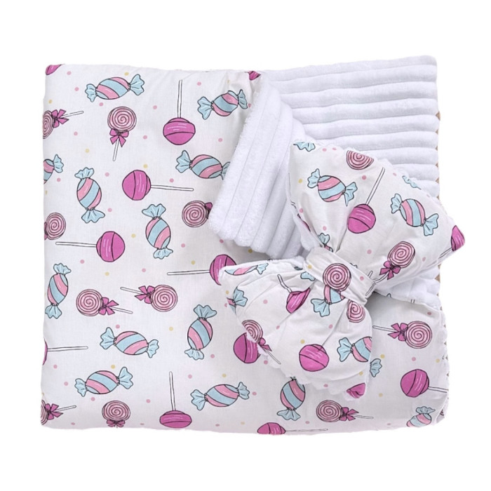 Плед зі зʼємним утеплювачем та бантом-резинкою Цукерки /Білий плюш 90/80
