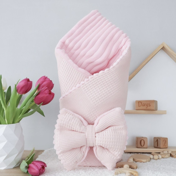 Плед зі з‘ємним утеплювачем та бантом-резинкою Вафелька Пудровий / Рожевий плюш 90/80