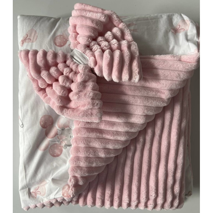 Плед зі з‘ємним утеплювачем та бантом-резинкою Ведмедик з кульками Рожевий/ Рожевий плюш 90/80