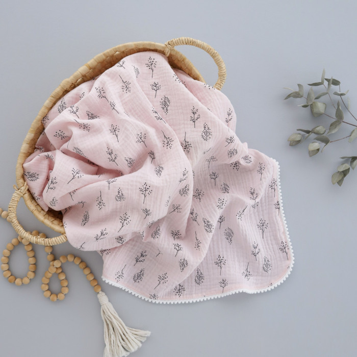 Мусліновий плед жатка 2 шари Гілочки на Рожевому 130/100