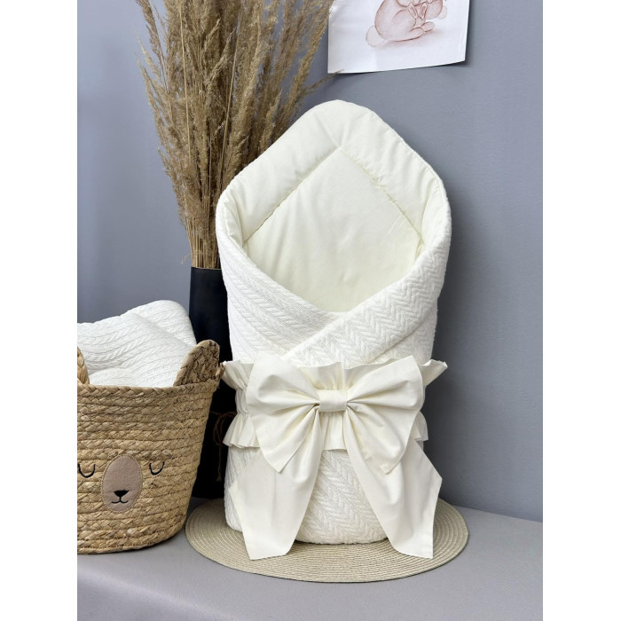 Конверт 80/80 з бантом-гумкою та кокосовою вкладкою Білий- Молочний / Весна