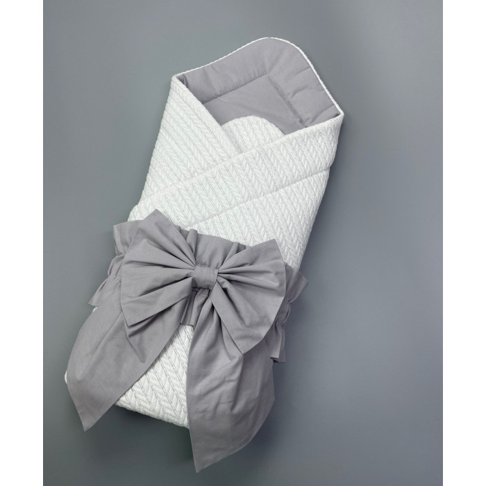 Конверт 80/80 з бантом-гумкою та кокосовою вкладкою Білий/Сірий / Весна