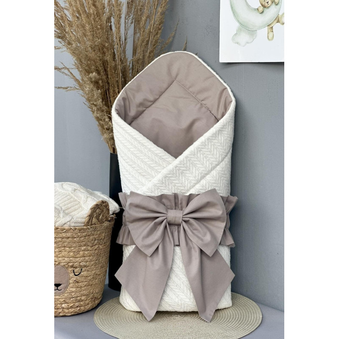 Конверт 80/80 з бантом та кокосовою вкладкою Білий - Капучино / Весна
