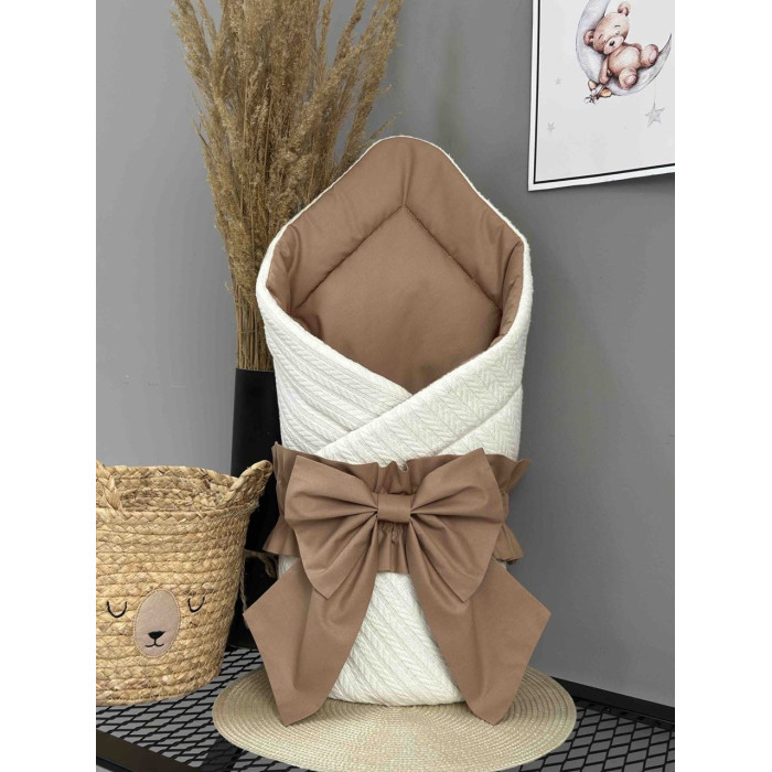 Конверт 80/80 з бантом та кокосовою вкладкою Білий- Коричневий / Весна