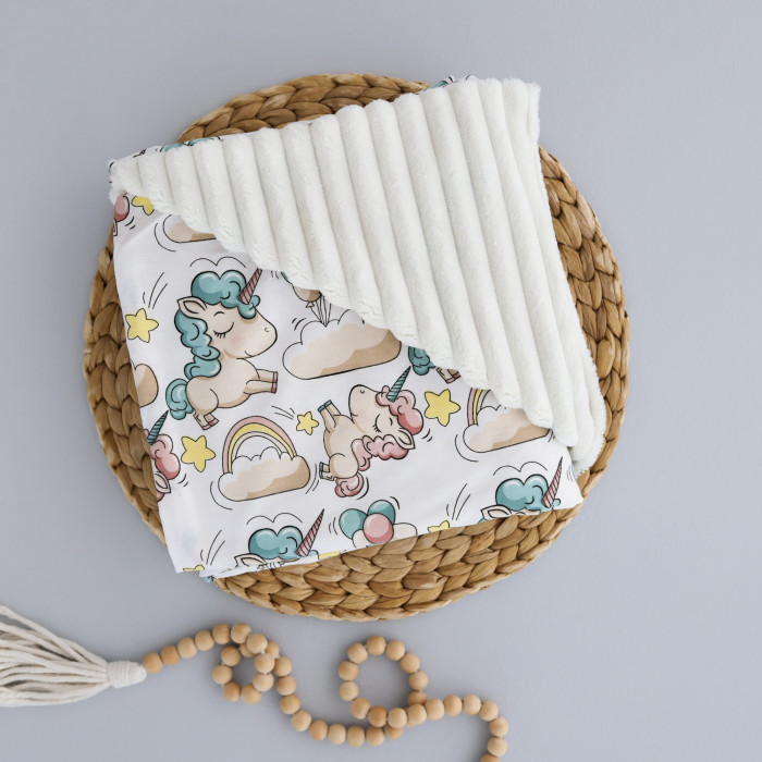 Плед плюш, без утеплення Единоріжки Молочний/ Молочний плюш 100/80