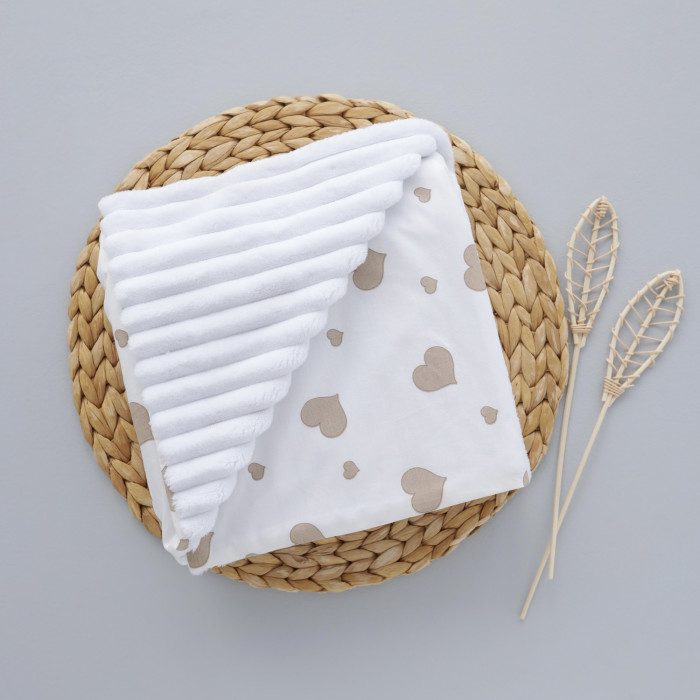Плед плюш, без утеплення Сердечка Бежевий на Білому /Білий плюш 100/80