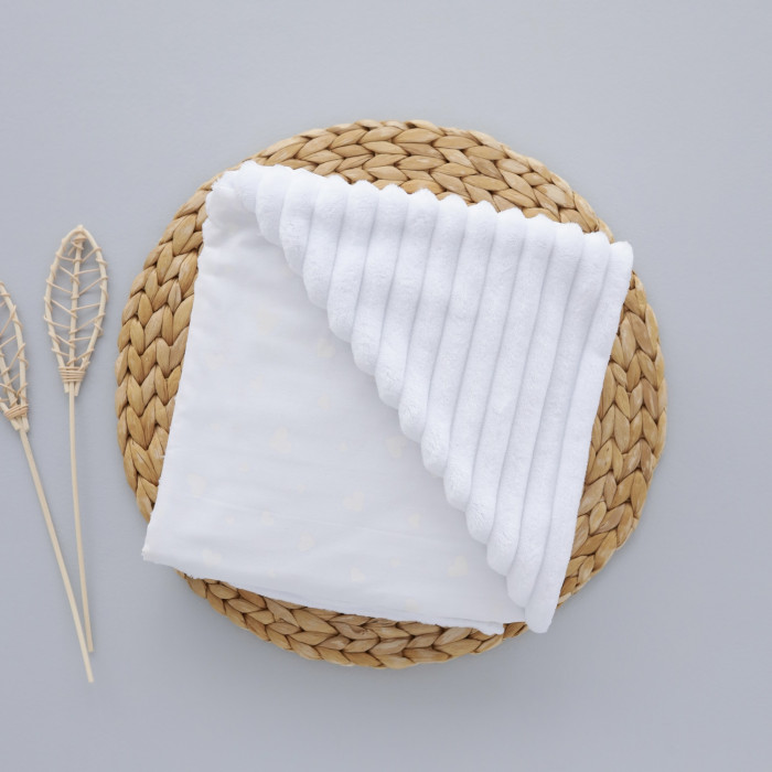 Плед плюш, без утеплення Сердечка Білі на Білому /Білий плюш 100/80