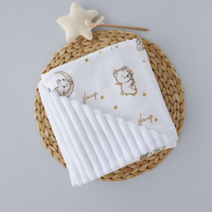 Плед плюш, без утеплення Ведмедик Місяць Бежевий /Білий плюш 100/80