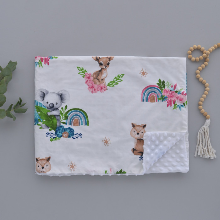 Плед плюш, без утеплення Коала Бірюзовий/ Білий плюш пупиришка 100/80