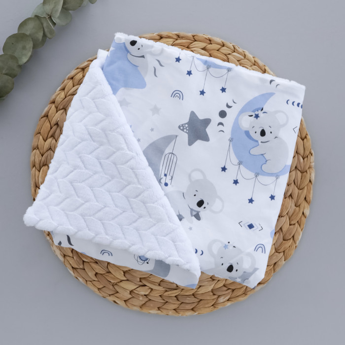 Плед плюш, без утеплення Коала Блакитний / Білий плюш косичка 100/80