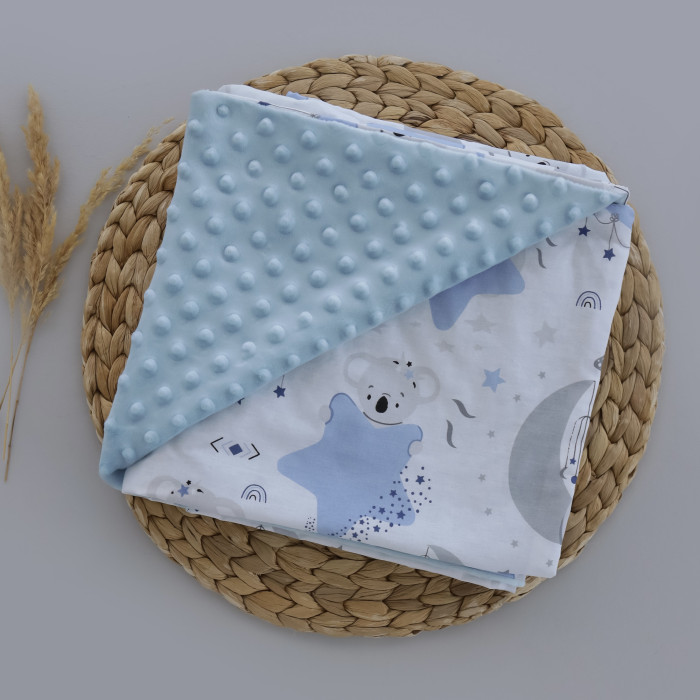Плед плюш, без утеплення Коала Блакитний / Блакитний плюш пупиришка 100/80