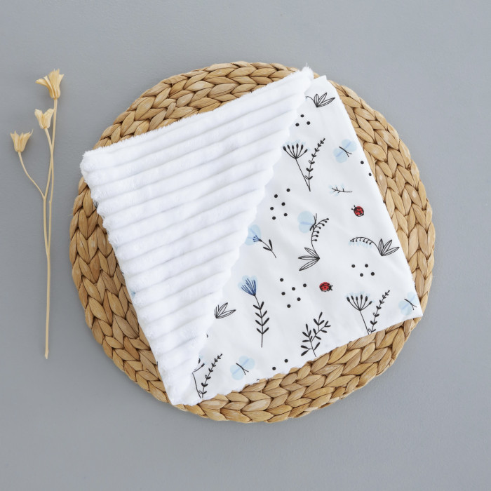 Плед плюш, без утеплення Квіточки Блакитний/ Білий плюш 100/80