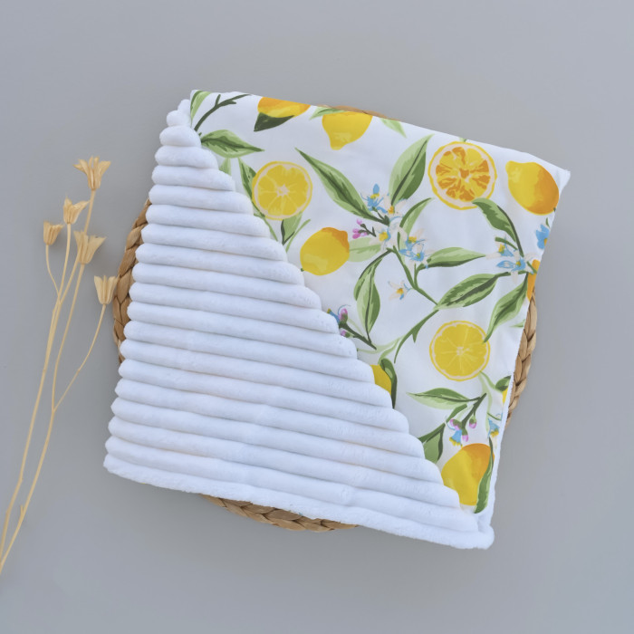 Плед плюш, без утеплення Лимони/ Білий плюш 100/80
