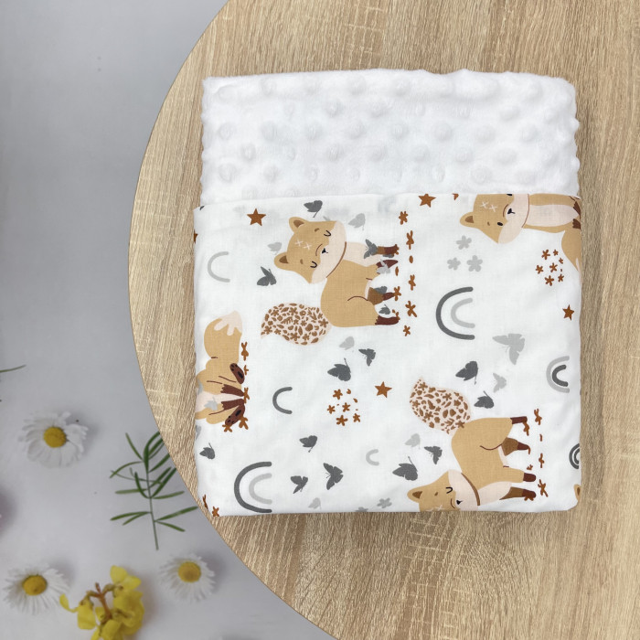 Плед плюш, без утеплення Лисичка/ Білий плюш пупиришка 100/80