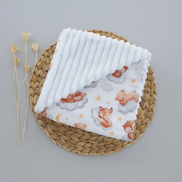 Плед плюш, без утеплення Лисички на хмаринці /Білий плюш 100/80