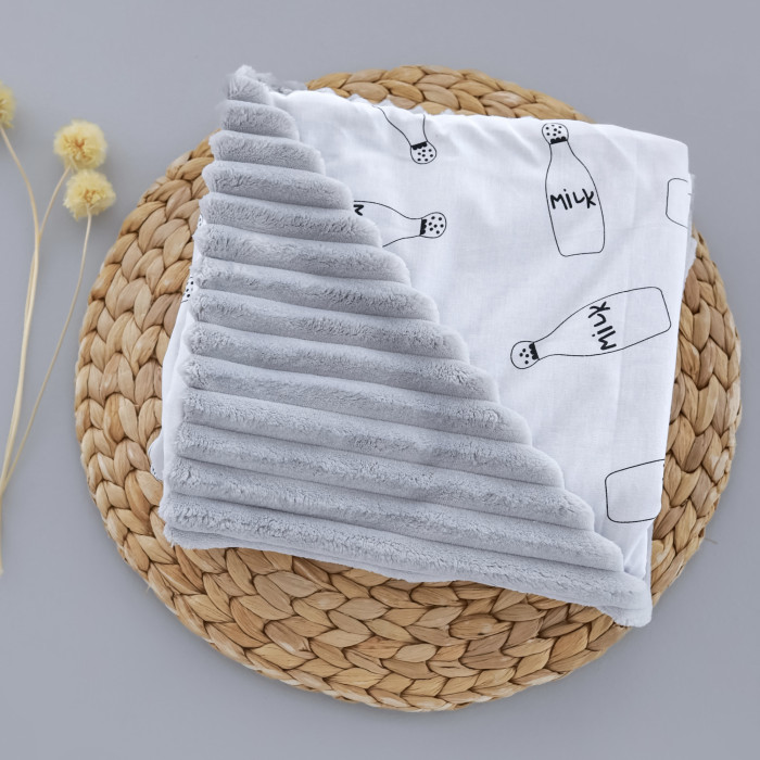 Плед плюш, без утеплення Мілк/ Сірий плюш 100/80