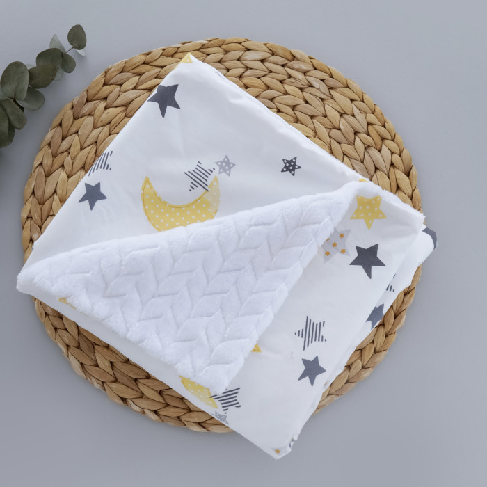 Плед плюш, без утеплення Місяць Жовтий/ Білий плюш косичка 100/80