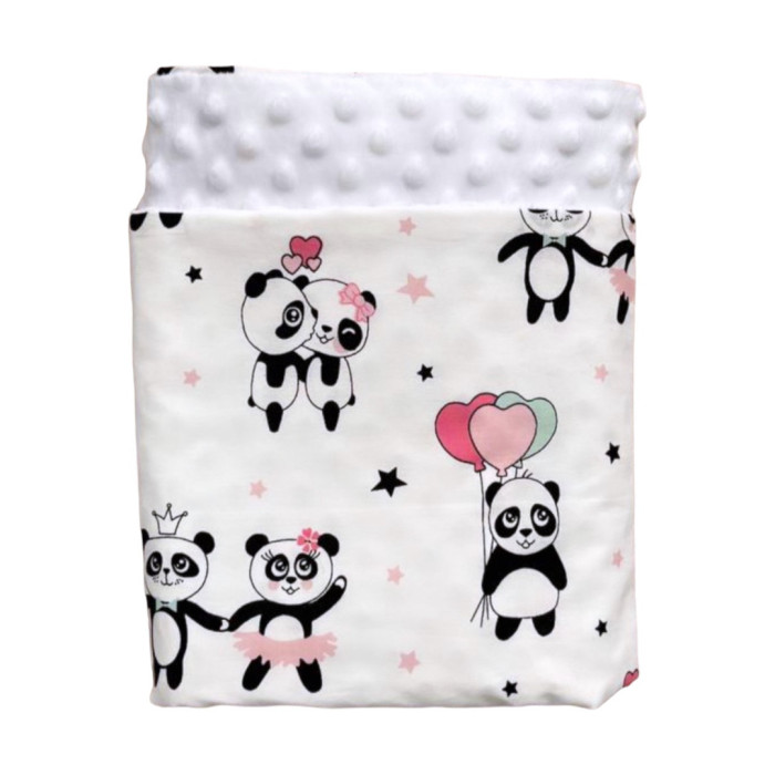 Плед плюш, без утеплення Панди Рожевий/ Білий плюш пупиришка 100/80