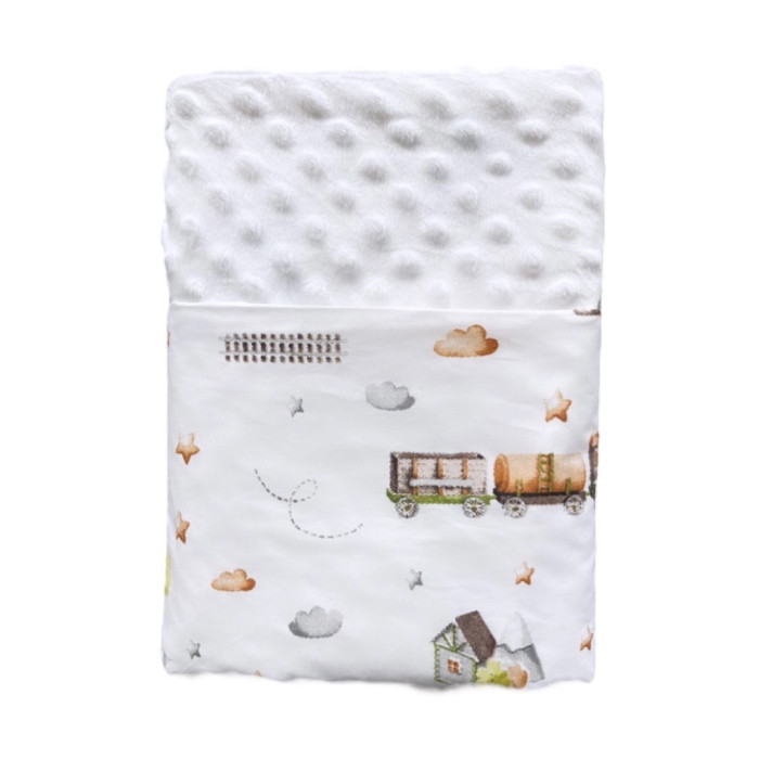 Плед плюш, без утеплення Паровоз Бежевий/ Білий плюш Пупиришка 100/80