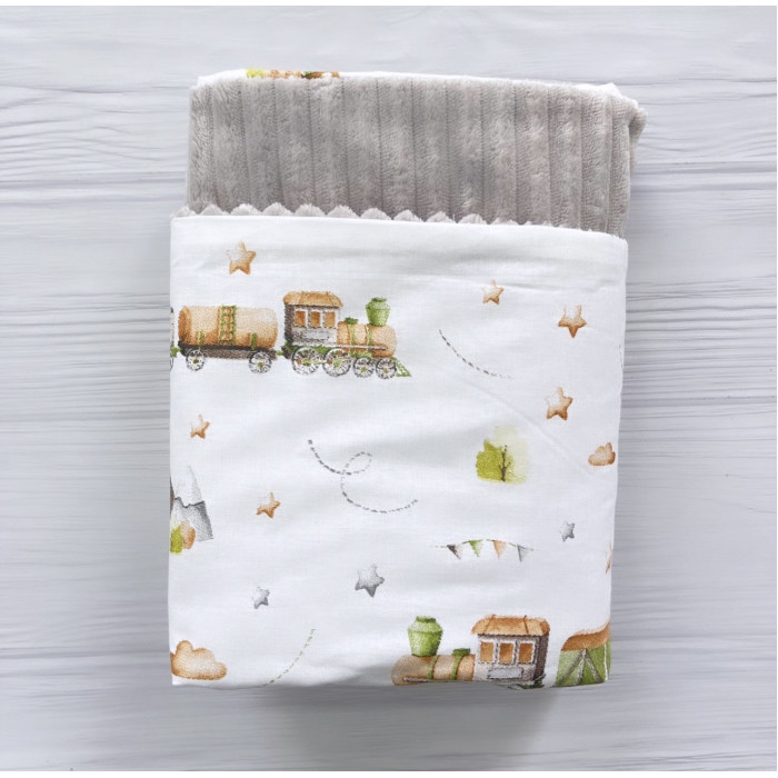 Плед плюш, без утеплення Паровоз Бежевий/ Сірий плюш 100/80