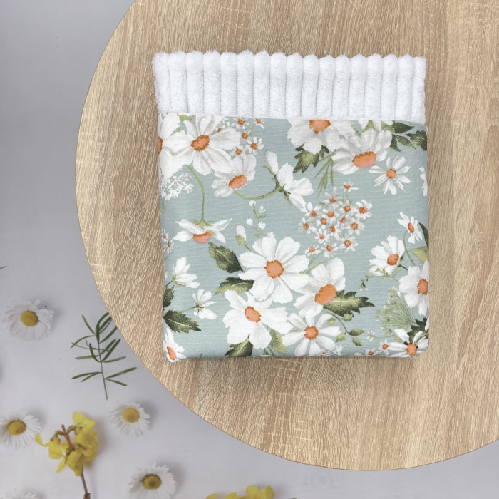 Плед плюш, без утеплення Ромашки Зелений , Білий плюш 100/80