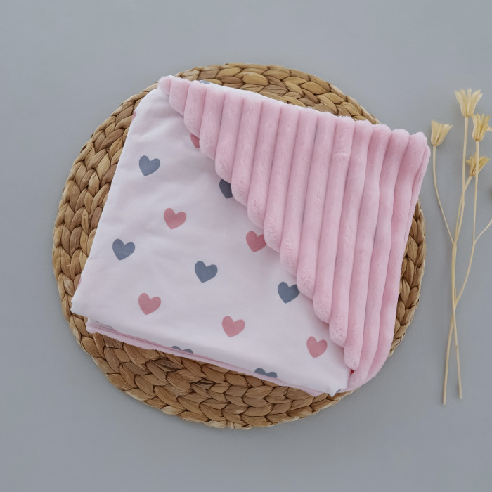 Плед плюш, без утеплення Сердечка Рожевий/ Рожевий плюш 100/80