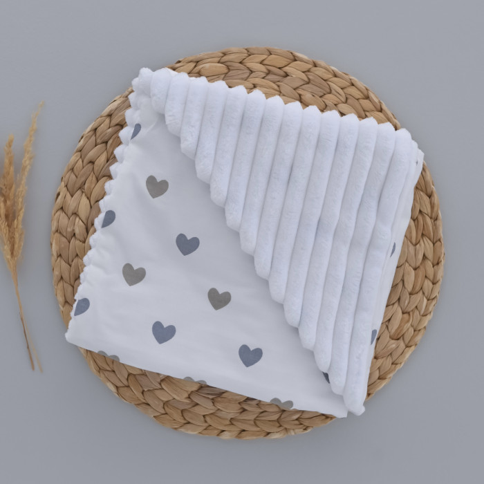 Плед плюш, без утеплення Сердечка Сірий / Білий плюш 100/80