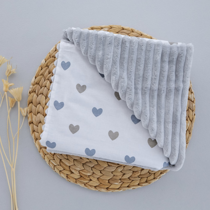 Плед плюш, без утеплення Сердечка Сірий/ Сірий плюш 100/80
