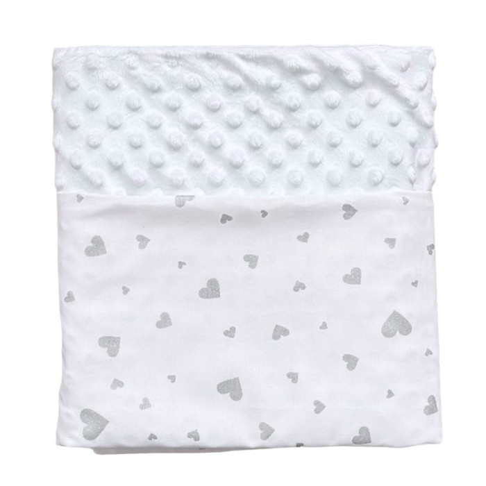 Плед плюш, без утеплення Сердечка Срібний (гліттер) / Білий плюш пупиришка 100/80