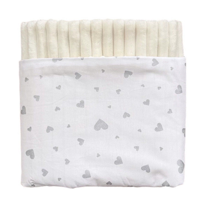 Плед плюш, без утеплення Сердечка Срібний (гліттер) / Молочний плюш 100/80