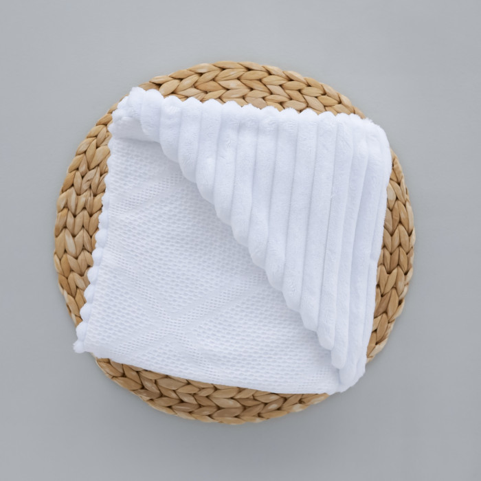 Плед плюш, без утеплення Вафелька Білий /Білий плюш 100/80