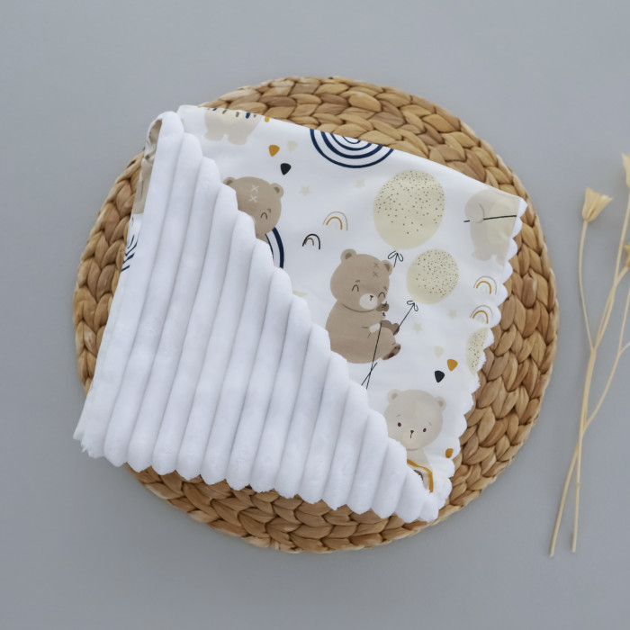 Плед плюш, без утеплення Ведмедик Бежевий /Білий плюш 100/80