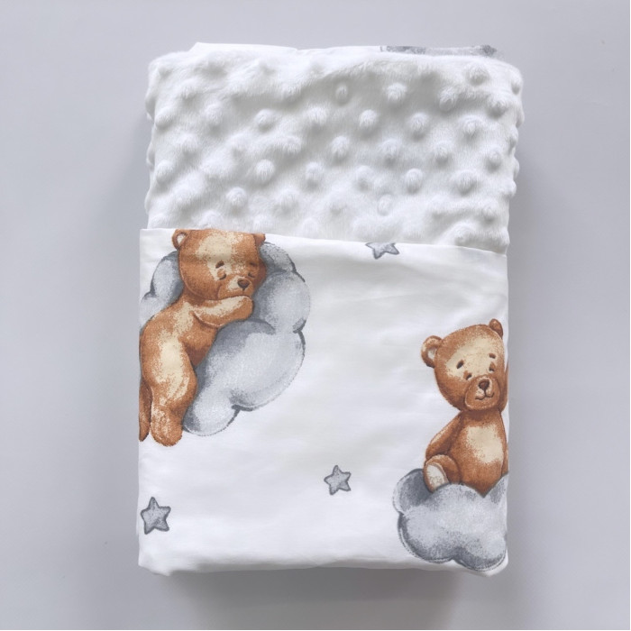Плед плюш, без утеплення Ведмедик Коричневий на хмаринці / Білий плюш Пупиришка 100/80